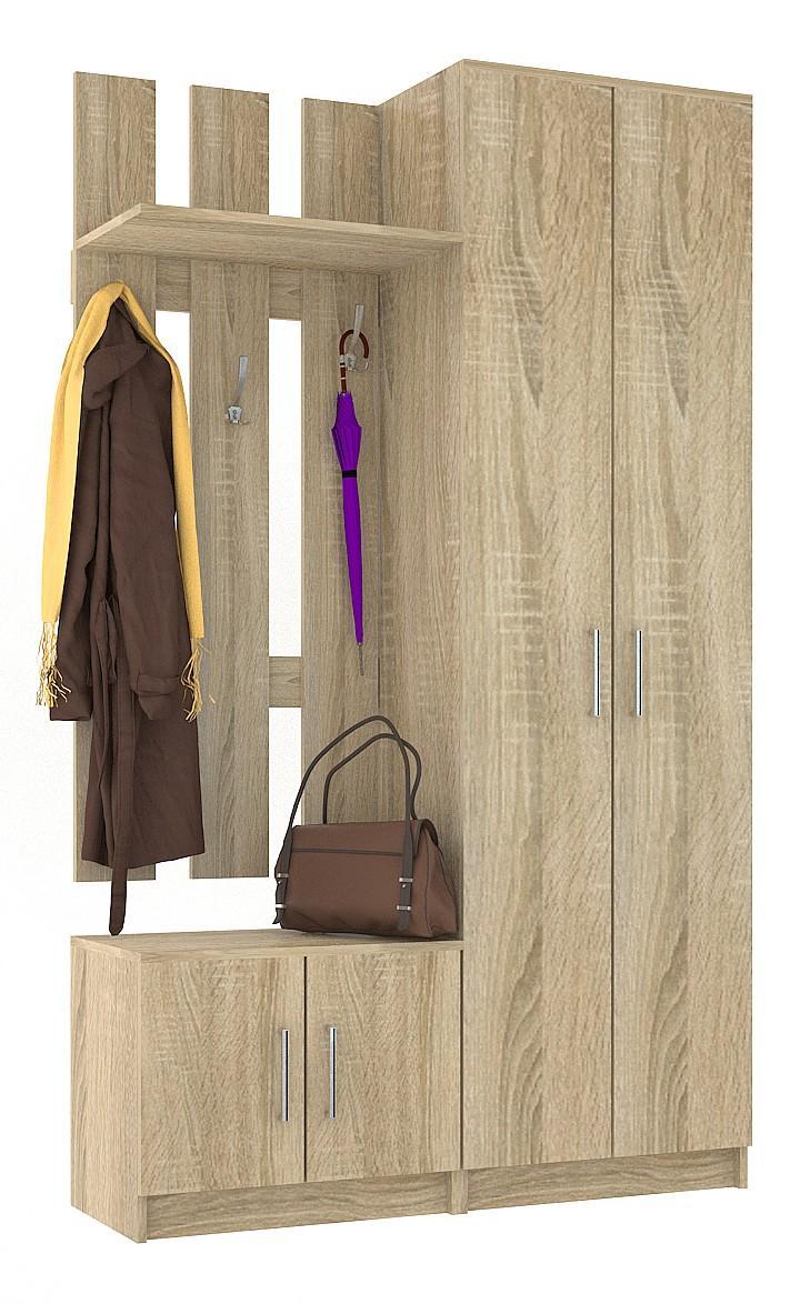 Стенка для прихожей Лофт NKM_72230019 создана популярным производителем мебели НК-Мебель. Она входит в серию «Лофт» и изготовлена в соответствии с общепринятыми стандартами качества. Предлагаемая рыночная цена за данную комплектацию составляет 8890 руб. Матовый корпус сделан из износостойкого материала (ЛДСП Е1), отличающегося долговечностью и легкостью в уходе, а его оттенок («дуб сонома») оптимально сочетается с расцветкой и фактурой фасада (ЛДСП Е1, цвет «дуб сонома»). Стенка для прихожей Лофт включает в себя следующие компоненты: 1 штанга для вешалок, 2 полки, 3 крючка, 4 дверцы. Желаем приятных покупок на нашем сайте!