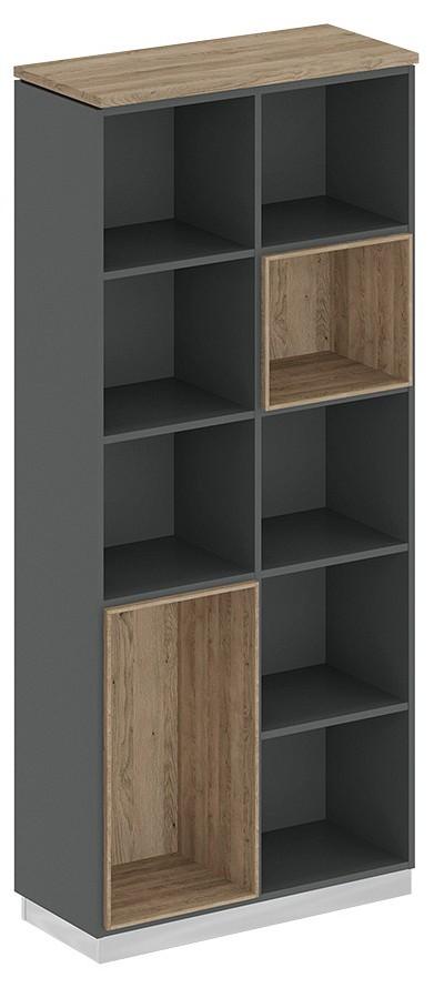 Стеллаж состоит из каркаса с полками, цоколя и топа.