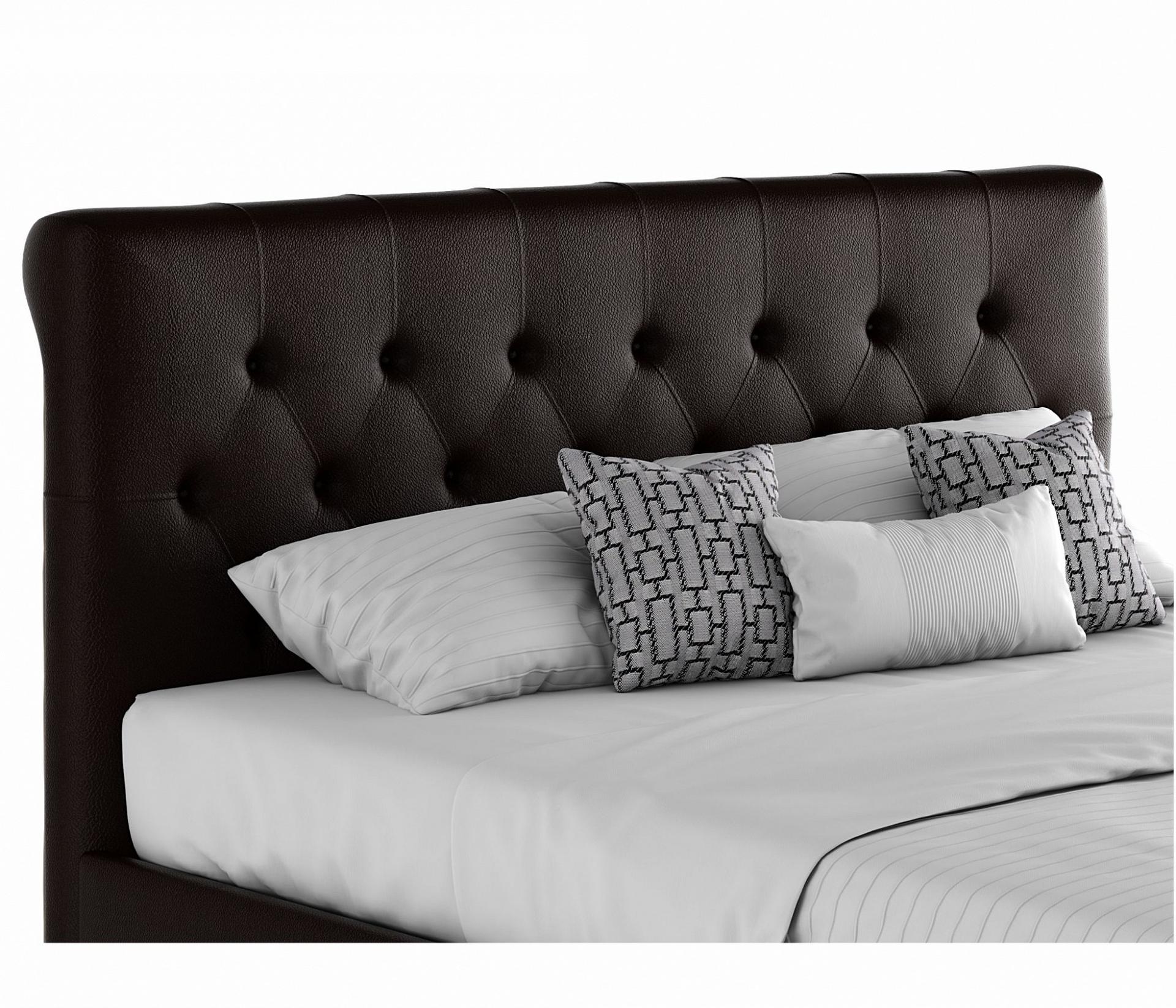 Кровать имеет рельефную мягкую спинку с неглубокими стяжками, которые придают особую изысканность изголовью. Обивка изголовья и весь периметр кровати выполнен из высокопрочного материала “Винилискожа”.