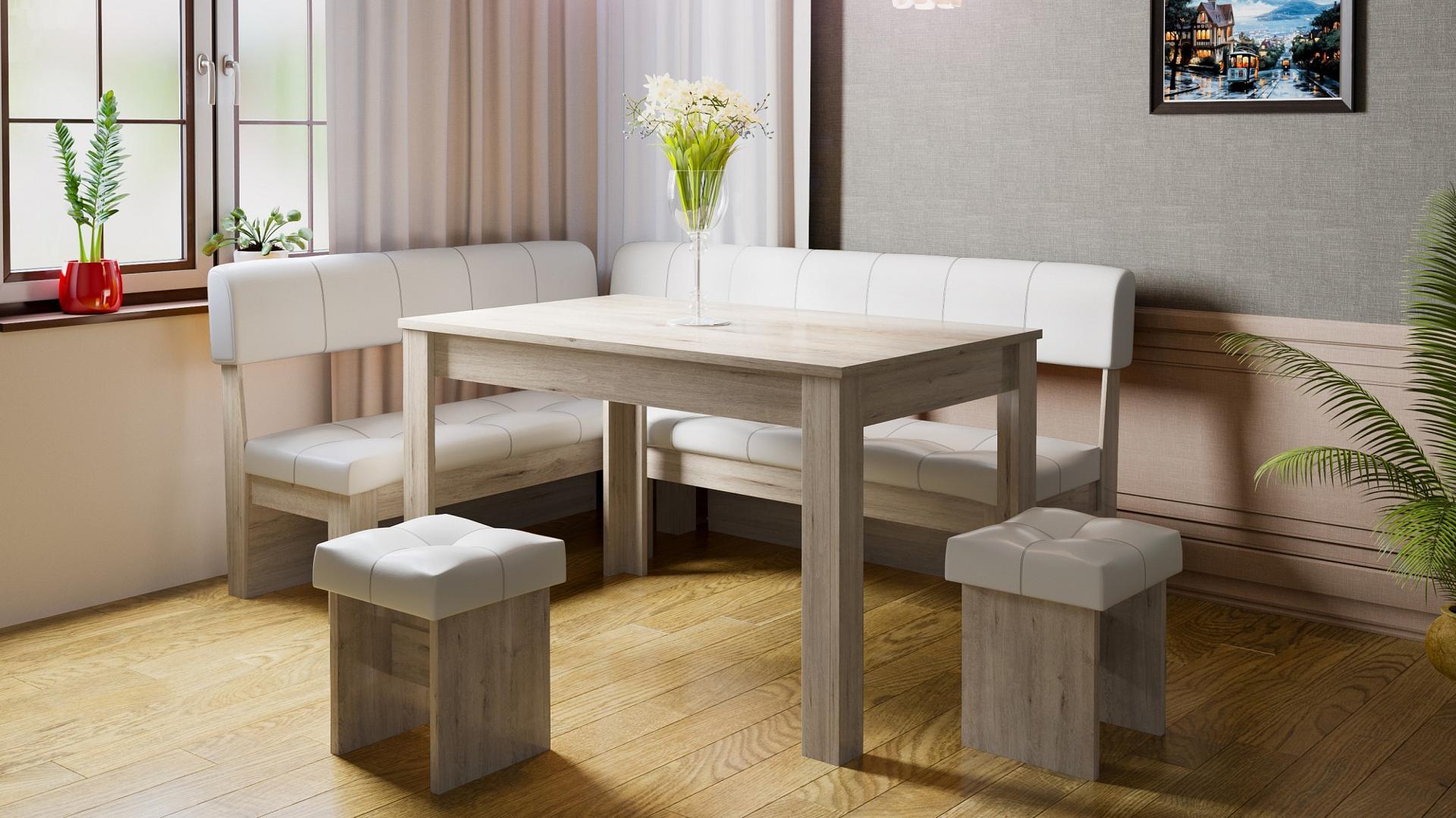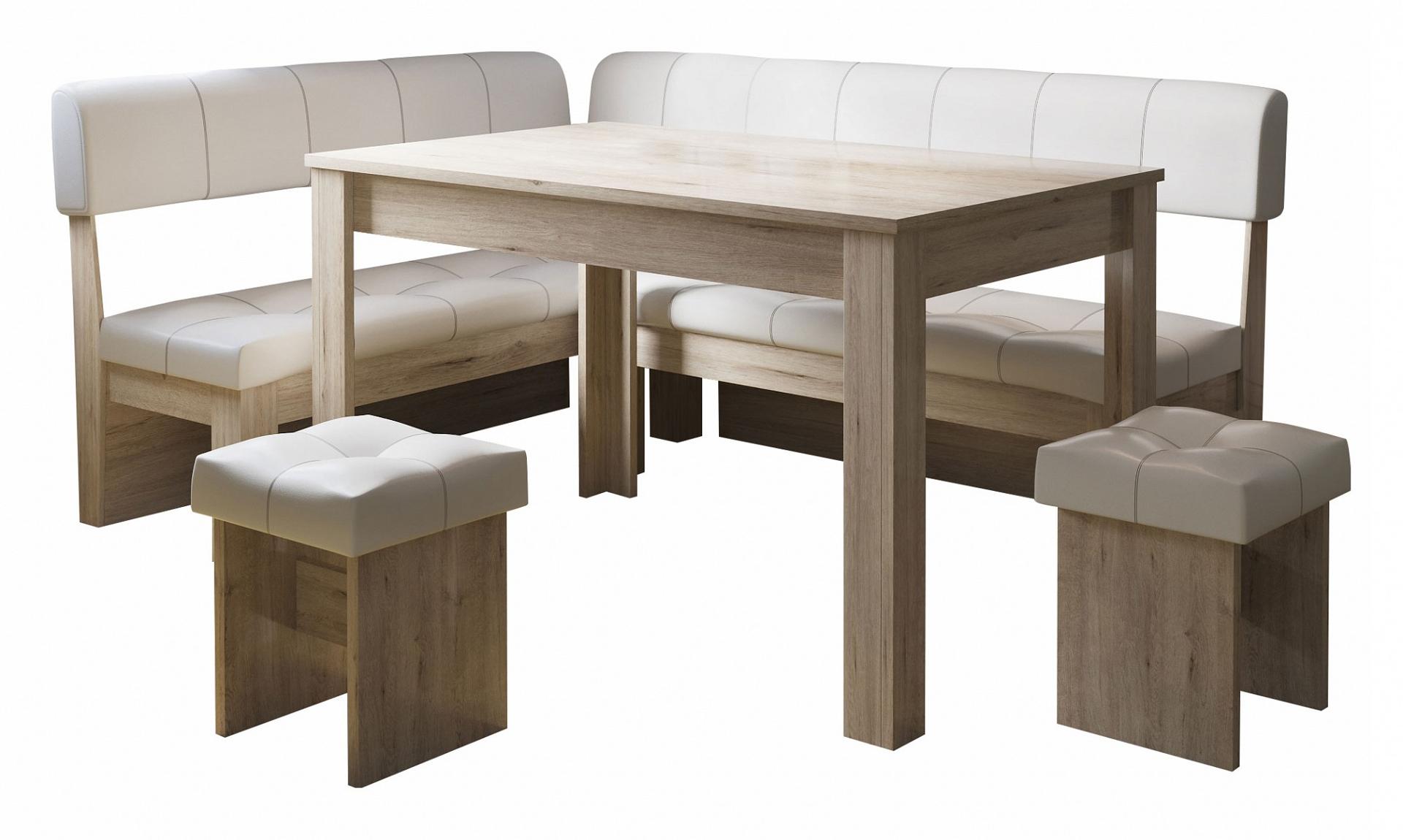 Кухонный уголок, пожалуй, одно из самых уютных мест в доме. Все члены семьи удобно устраиваются на мягких сиденьях, облокачиваются на удобные спинки и наслаждаются ужином. Хотите, чтобы и ваша кухня стала такой привлекательной? Тогда вам обязательно стоит обратить свое внимание на уголок кухонный Валенсия ETO_00-00001935 из коллекции «Валенсия». Данная модель практична и комфортна, угол универсальный, поэтому изделие удачно впишется в любую обеденную зону. В комплект, созданный брендом ЭТОмебель, входит стол - 1200x600x740 мм диван - 1534x1134x940 мм 2 табурета - 330x330x465 мм, стол не раскладывается. Столешница изготовлена из ЛДСП Е1 в оттенке «дуб белфорт», отлично дополняя матовый корпус. Уголок кухонный Валенсия вы можете приобрести за 20130 руб. Приятных покупок!