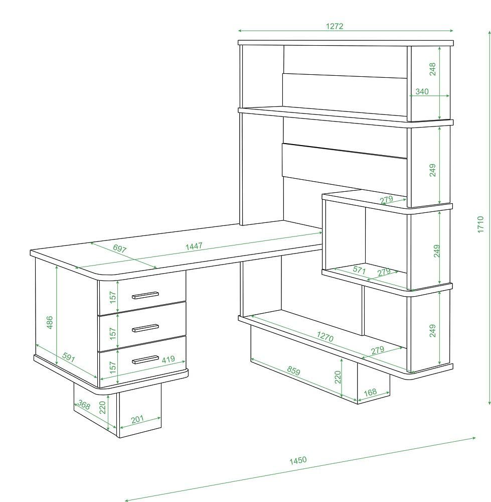• 5 полок;, тумбочка: