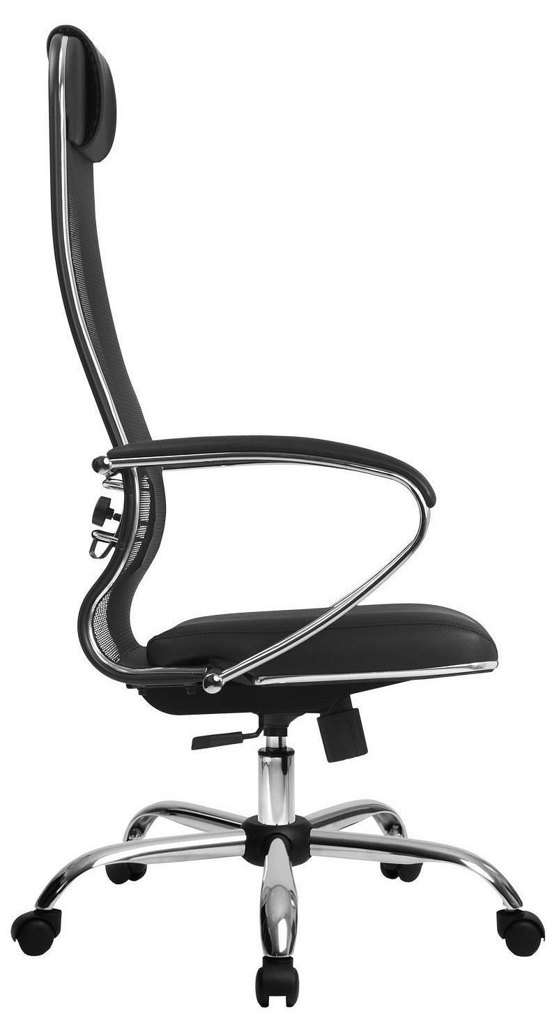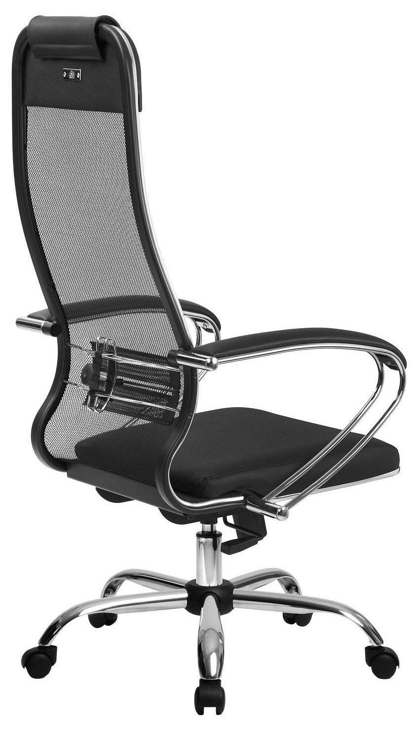 Подлокотники - стальные классические, покрытые зеркальным хромом. Обивка накладок - экокожа.