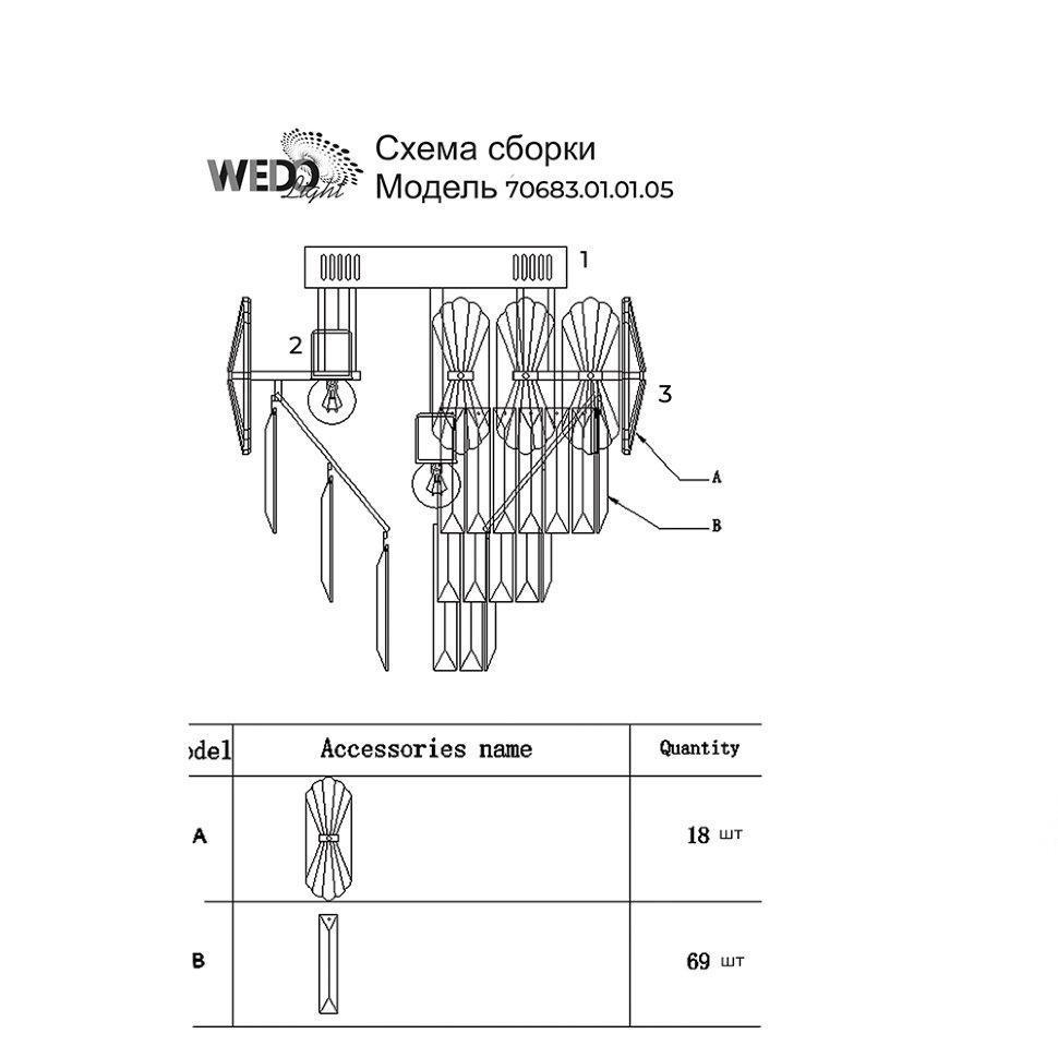 Семь Огней создает продукт от эскиза до готового шедевра. Над созданием светильников трудятся одни из лучших дизайнеров и конструкторов. Наша компания предъявляет высокие требования к производимой продукции, что подтверждено сертификатами качества.ПРЕИМУЩЕСТВАЭлегантный и стильный дизайнИзящный внешний видХрусталь превосходного качестваПРИМЕНЕНИЕПотолочная люстра предназначена для основного освещения помещенийЛюстра отлично подойдет в гостиную, зал, спальню, столовую, прихожую с невысокими потолкамиКОНСТРУКЦИЯ И МАТЕРИАЛЫЛюстра изготовлена из высококачественных материалов и является безопасной для человека, животных и окружающей средыИспользуемые материалы: металл, хрустальИсточник света - лампы накаливания мощностью до 60Вт, светодиодные лампы мощностью до 12ВтКрепление - накладным способом с помощью шуруповУдобный крепеж подойдет под все виды потолков: бетон, гипсокартон, натяжные и деревянные потолки.