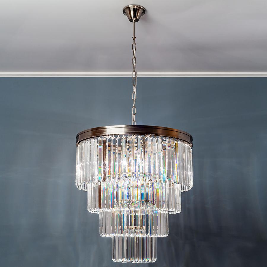 Данная модель входит в состав коллекции 1004 и исполнена в стиле модерн. Люстра имеет высоту 610-1200 мм и диаметр 590 мм. Работает при напряжении 230 V.