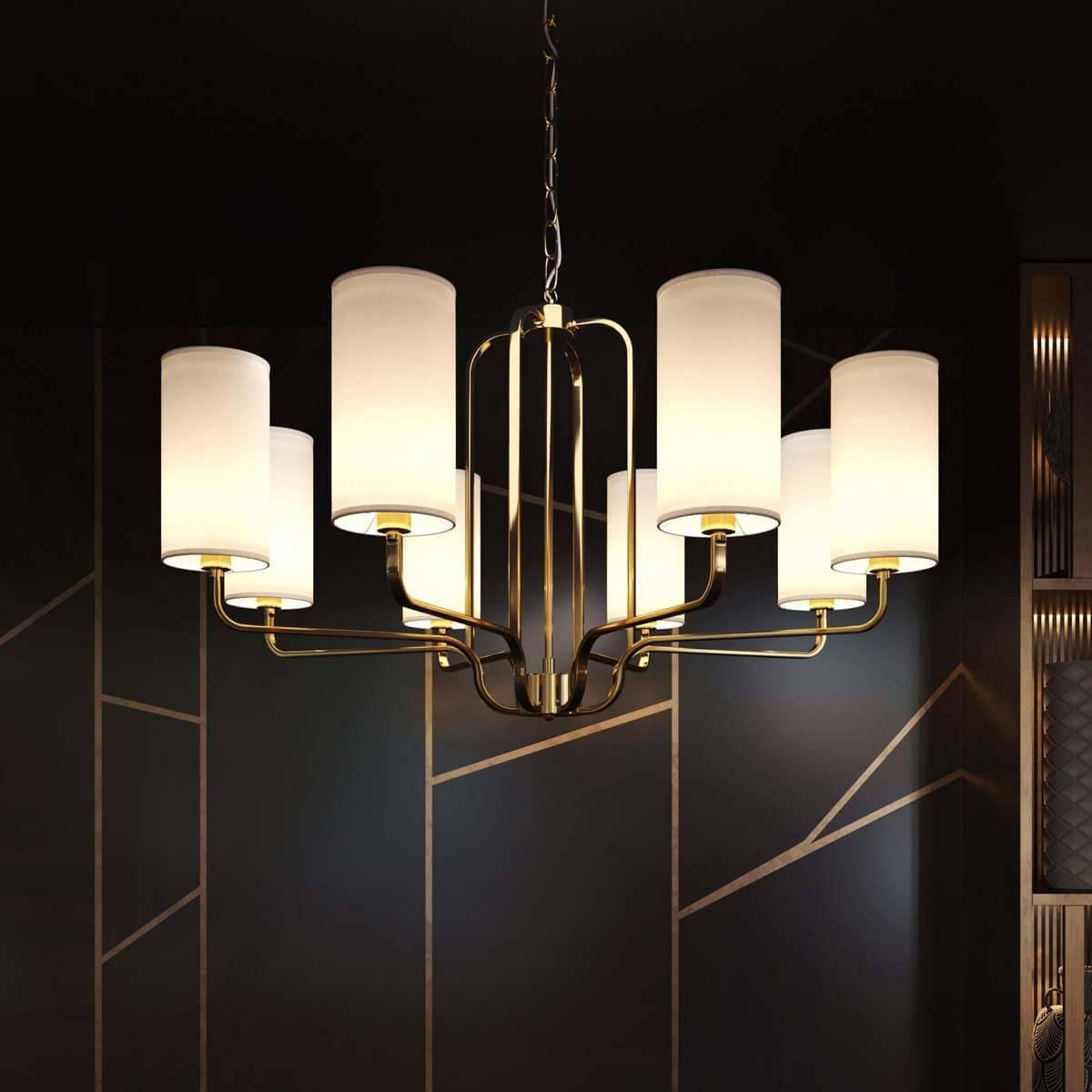 Великолепная модель 60128/8 золото от российской компании Eurosvet и отлично подойдет для установки на потолок в гостиной, оформленной в современном стиле. Подвесная люстра Eurosvet 60128/8 золото осветит помещение площадью 21.3 кв. м. Производитель Eurosvet рекомендует использовать для устройства лампы накаливания с цоколем E14 и мощностью 40 W. Прибор произведен с использованием материалов: металл и ткань. Основным цветом товара является золотой и белый. Подвесная люстра 60128/8 золото продается по цене 27800 руб. Торопитесь сделать заказ в интернет-магазине SvetONe.