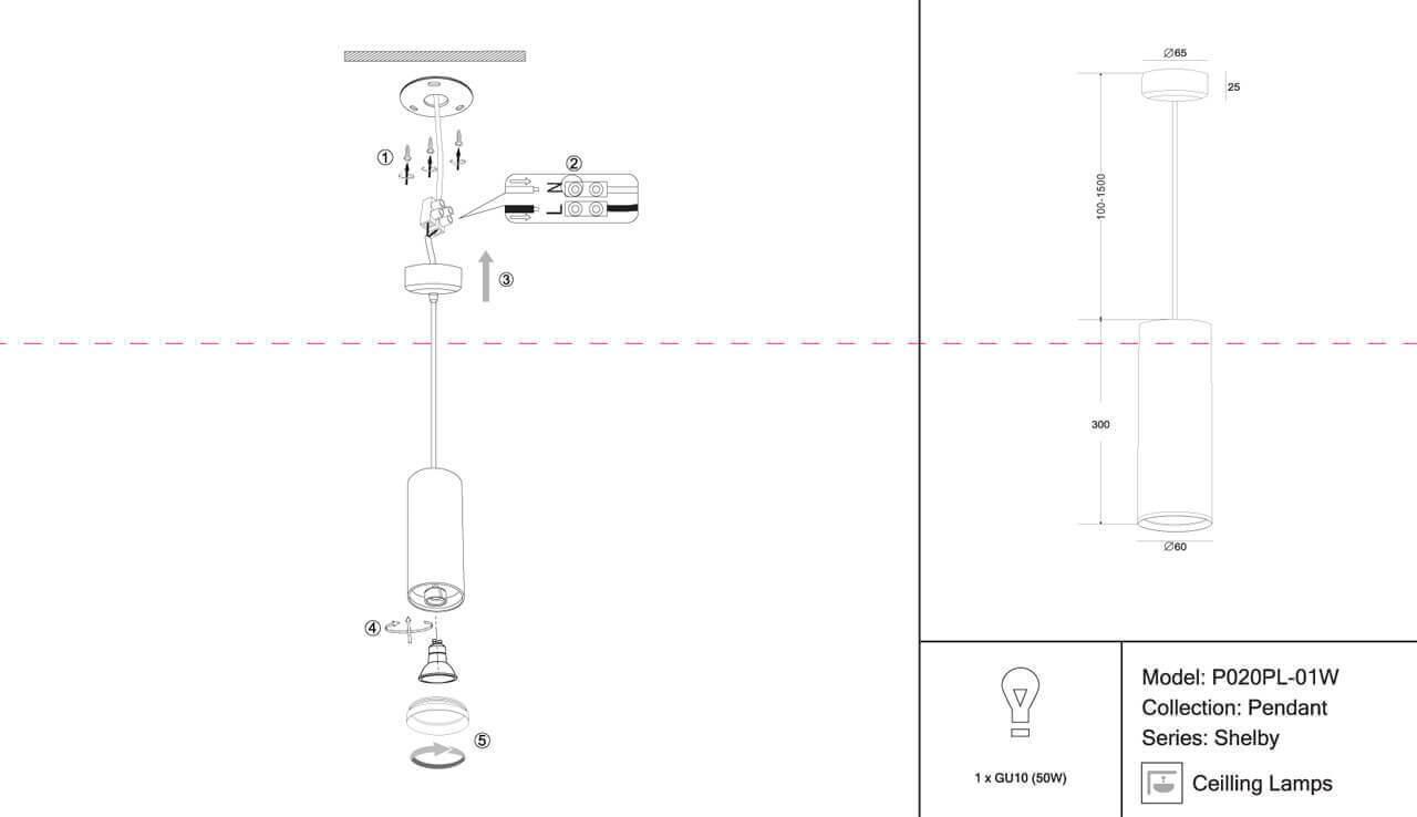 Подвесной светильник Maytoni Shelby P020PL-01W