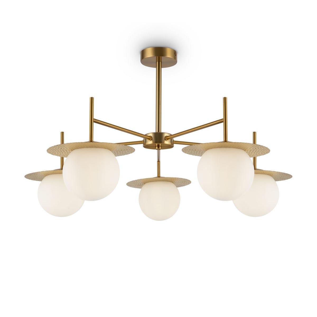 Стильная модель FR5202PL-05BS от немецкой компании Freya относится к коллекции Camelia и отлично подойдет для установки на потолок спальни, оформленной в современном стиле. Потолочная люстра Freya Camelia FR5202PL-05BS с плафонами в виде шаров осветит помещение площадью 20 кв. м. Производитель Freya рекомендует использовать для устройства лампы накаливания с цоколем E27 и мощностью 60 W. Прибор произведен с использованием материалов: стекло и металл и может использоваться для натяжного потолка. Основным цветом товара является белый и латунный. Потолочная люстра FR5202PL-05BS продается по цене 17590 руб. Торопитесь сделать заказ в интернет-магазине SvetONe.