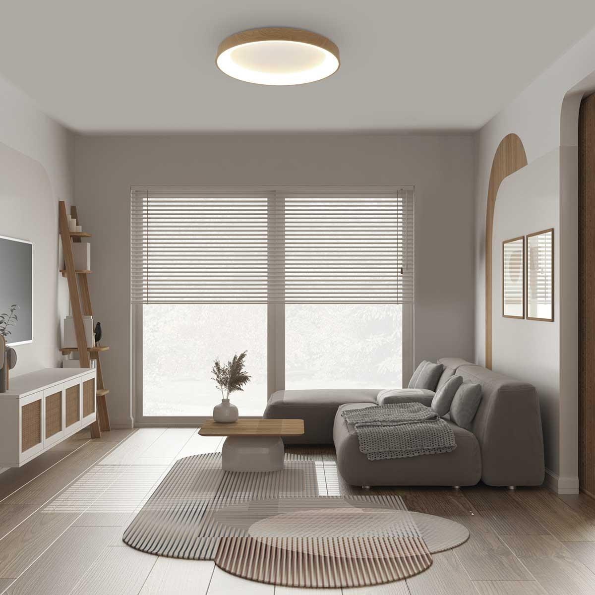 Роскошная модель 8586 от испанской компании Mantra относится к коллекции Niseko II и отлично подойдет для установки на низкий потолок в гостиной, оформленной в скандинавском стиле. Осветительный элемент встроен в конструкцию и не требует приобретения дополнительных лампочек. Прибор произведен с использованием материалов: акрил и металл и может использоваться для натяжного потолка. В комплект поставки входит пульт дистанционного управления. Основным цветом товара является деревянный и белый. Потолочный светодиодный светильник 8586 с диммером продается по цене 44658 руб. Торопитесь сделать заказ в интернет-магазине SvetONe.