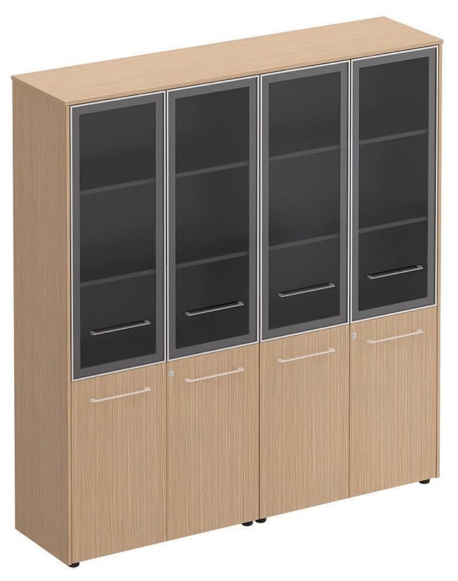 Секции шкафов для документов имеют 3 регулируемые по высоте полки и 1 фиксированную по высоте полку. Проемы шкафа обеспечивают размещение стандартных папок CORONA высотой 320 мм.